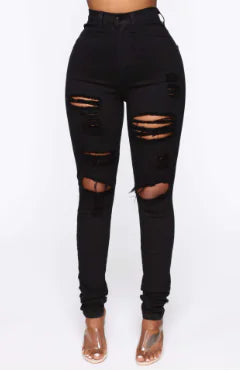 Stylish Women's Slim Fit Ripped Solid Color Jeans