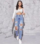 Wide Leg Distressed High Waist Women's Denim Jeans