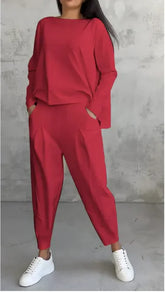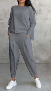 Women’s Autumn Sports Set Long Sleeve Top & Wide-Leg Pants