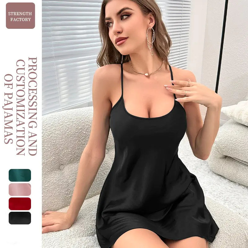 Women's Backless Ice Silk Summer Pajamas Nightdress