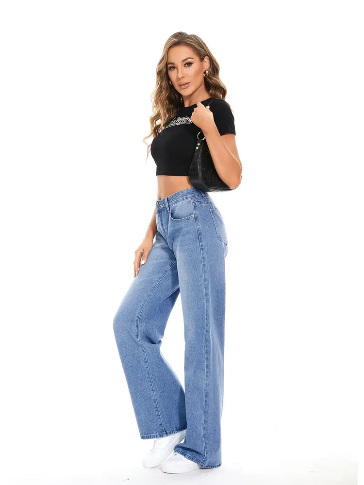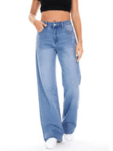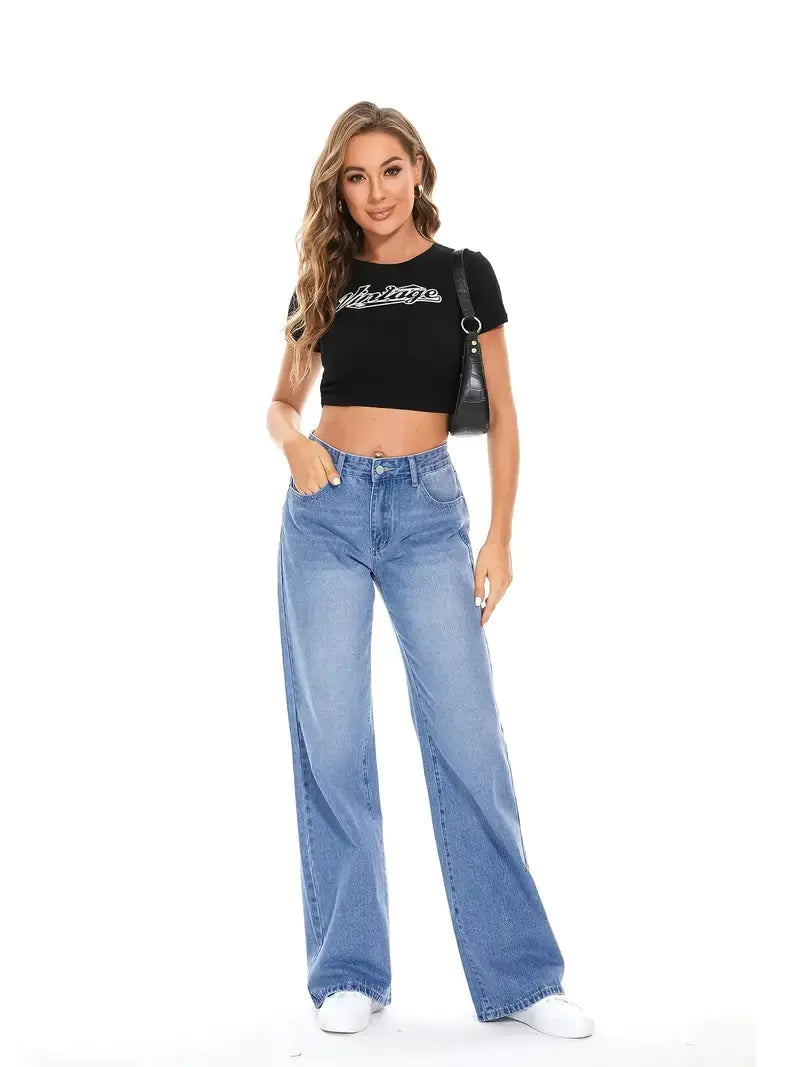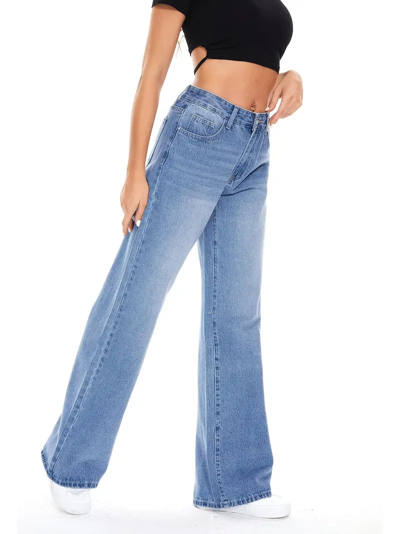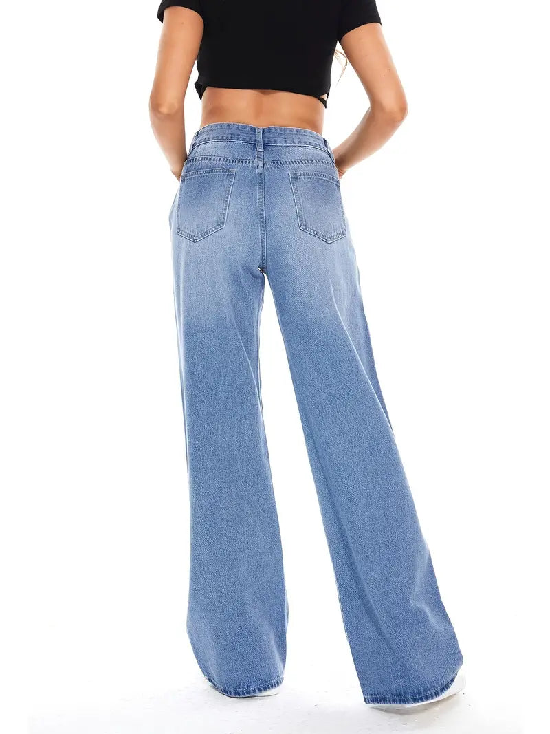 Women's Blue Washed Wide Leg Baggy Boyfriend Jeans