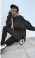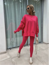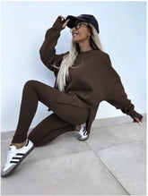 Women's Casual Sweater Set with Split Top and Tight Trousers
