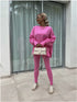 Women's Casual Sweater Set with Split Top and Tight Trousers