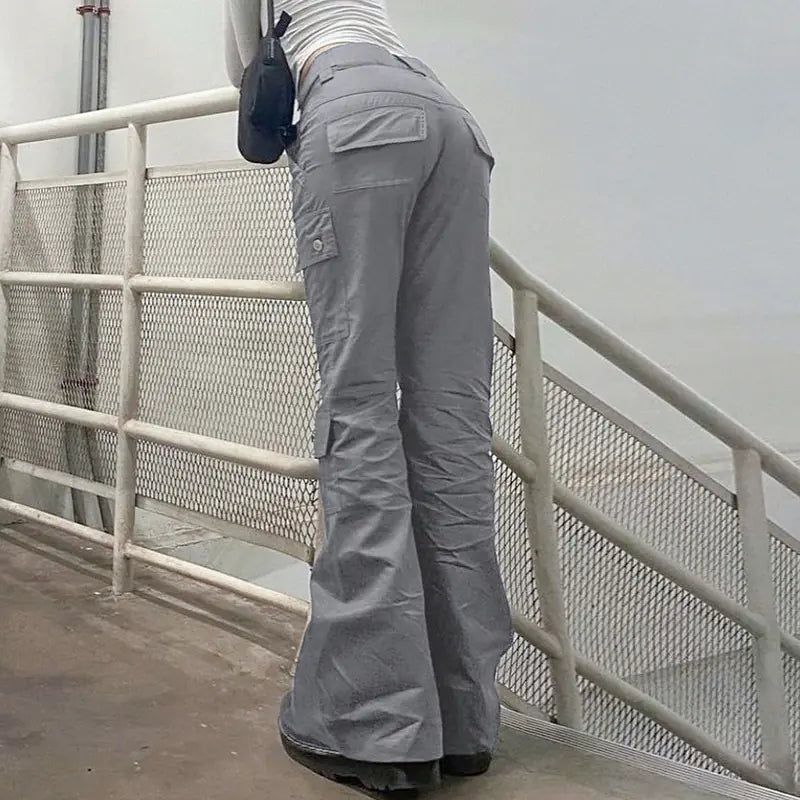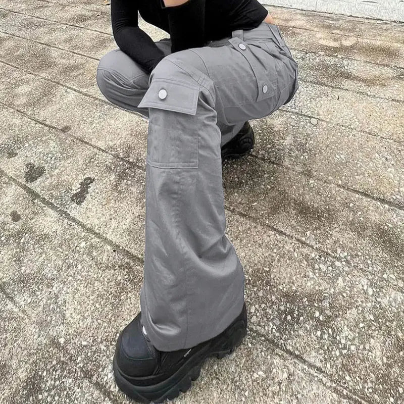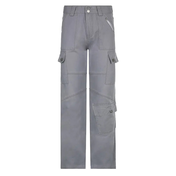 Women's Gray High Waist Multi-Pocket Workwear Jeans