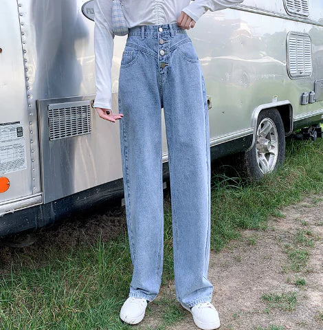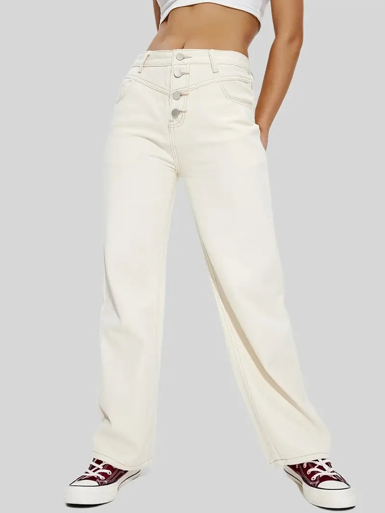 Women's High Waisted Loose Fit White Denim Jeans