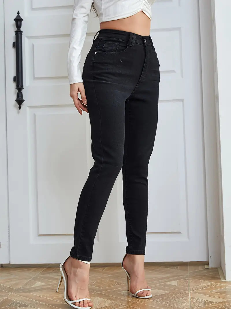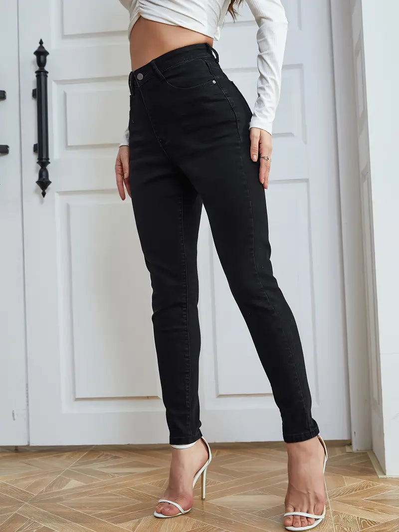 Women's High Waisted Skinny Jeans with Slash Pockets